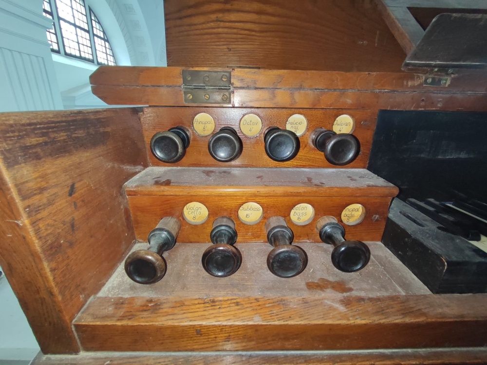 | Hangterjedelem: manuál C-f´´´, pedál C-h (ki van építve) |