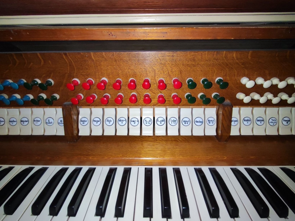 | Tonski opseg: manual C-a´´´, pedal C-f´ | ||
