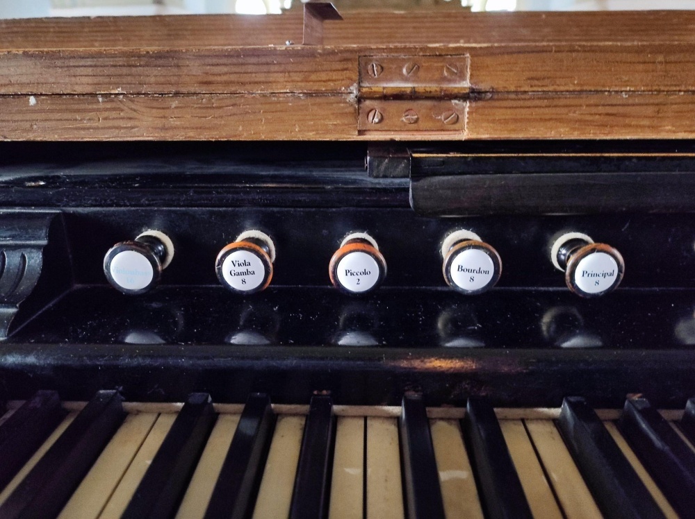 | Hangterjedelem: manuál C-f´´´, pedál C-d´ |
