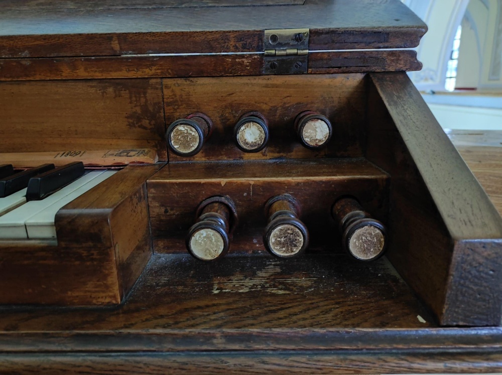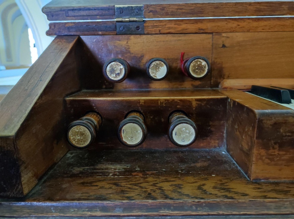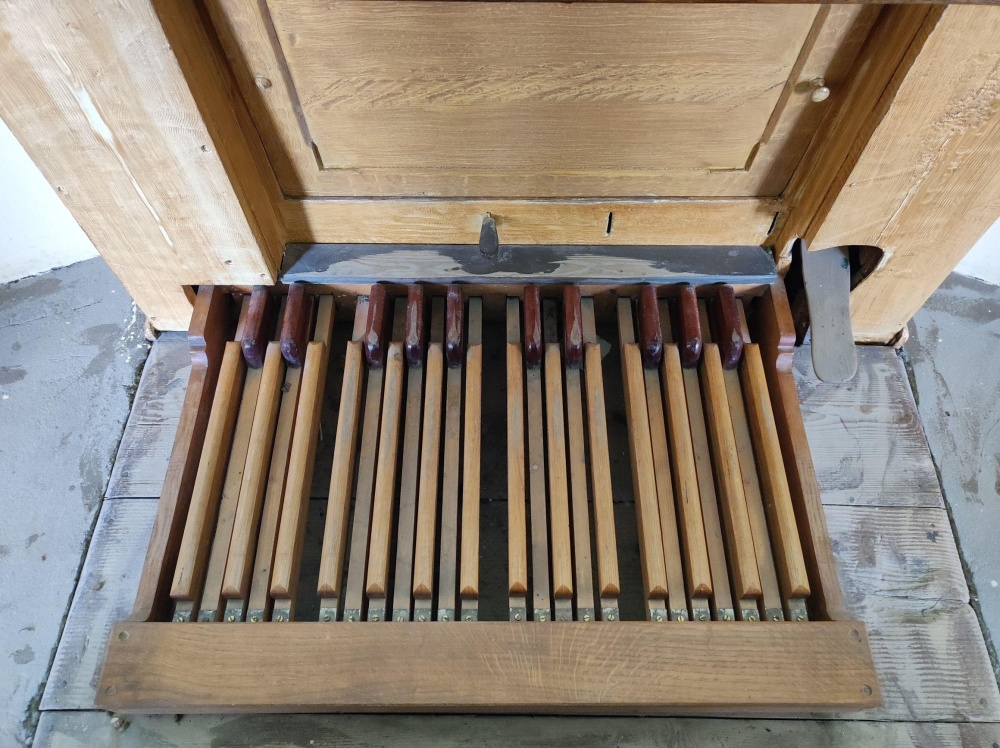 | Izuzev prospektnih svirala svi manualni registri nalaze se u ormanu sa žaluzinama. | |