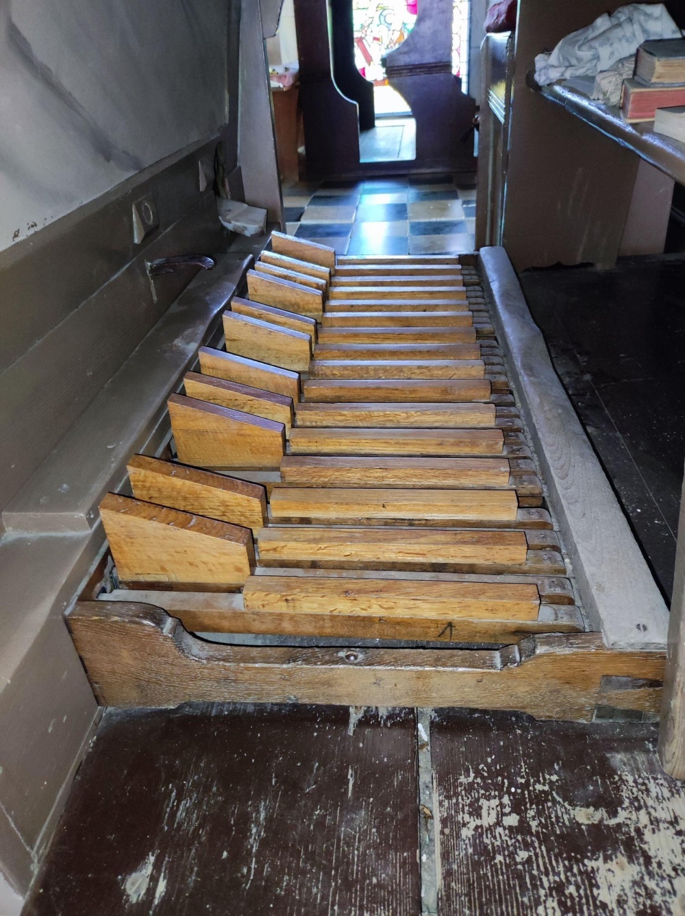 | Izuzev prospektnih svirala, svi registri smešteni su u orman sa žaluzinama. |