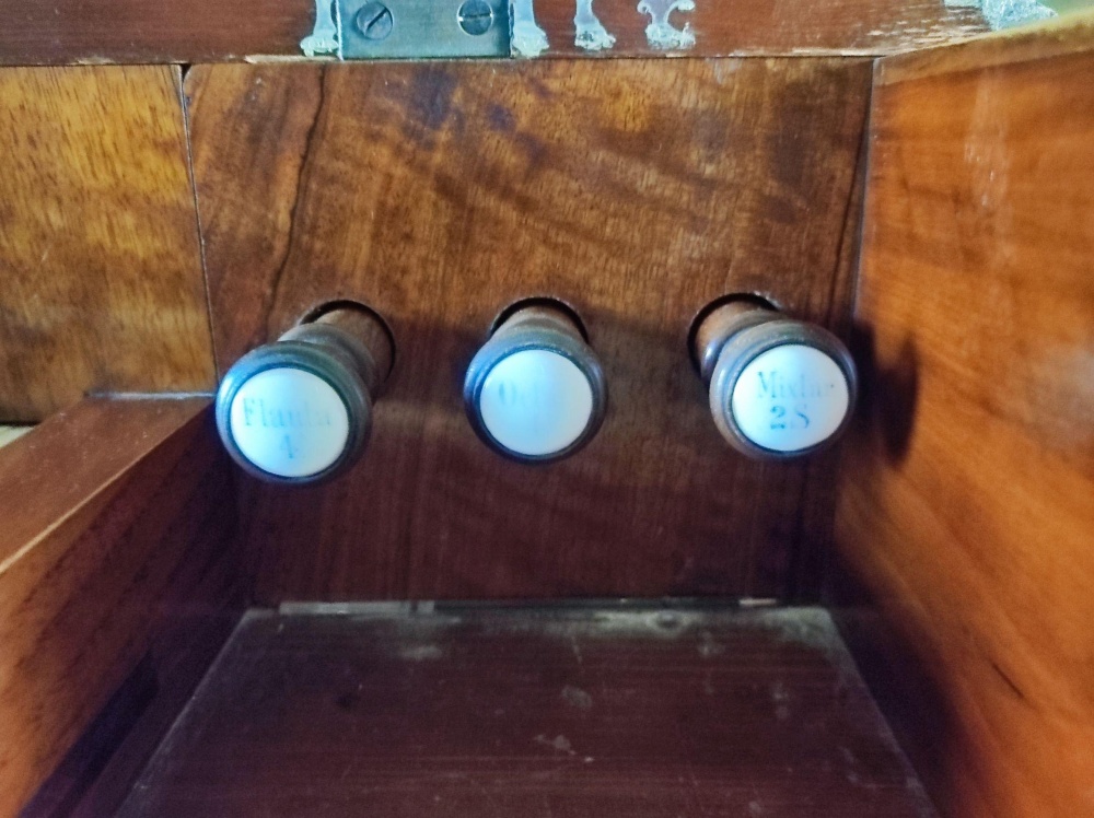 | Tonski opseg: manual C-f´´´, pedal C-h (repetira) | |