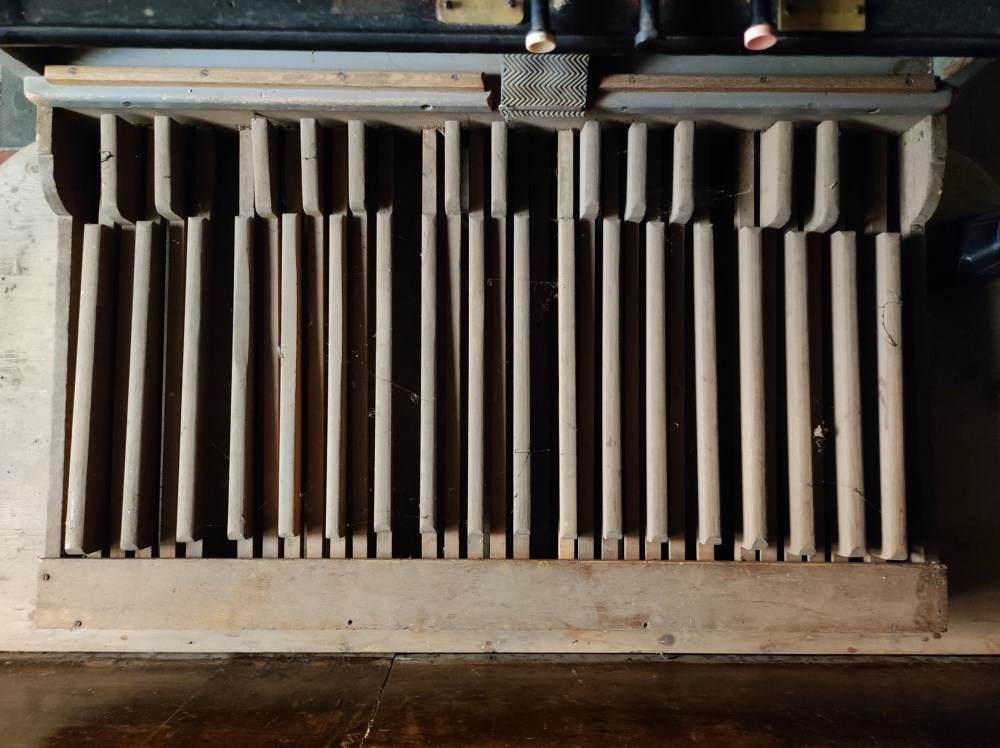 | Uglasti tasteri ispod II manuala desno: | ||